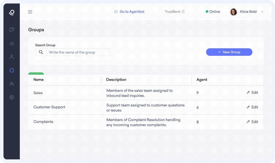 Yes. Organize agents by expertise, set specific service hours, and define routing rules based on customer need, agent skills, and availability. Transfer sessions seamlessly between groups or individual agents.