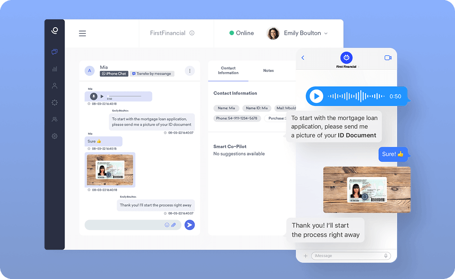 High-stakes decisions need face-to-face interaction. Escalate to video instantly from any channel with document sharing and screen control. Automatically recorded for compliance.