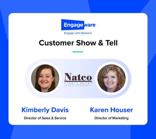 NATCO Credit Union implemented Engageware’s Appointment Scheduling solution in October of 2021. In this Engage with Banker’s customer show & tell session, NATCO’s Karen Houser, Director of Marketing, and Kimberly Davis, Director of Sales and Services, reflect on the implementation process. They share 5 things they learned and other institutions should consider as they implement […]