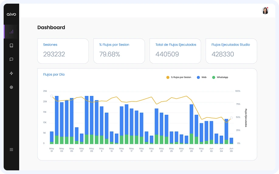Monitorea sesiones, mide feedback e identifica preguntas sin respuesta. Accede a dashboards en tiempo real, detecta brechas de contenido y mejora el desempeño de la IA con métricas de satisfacción.