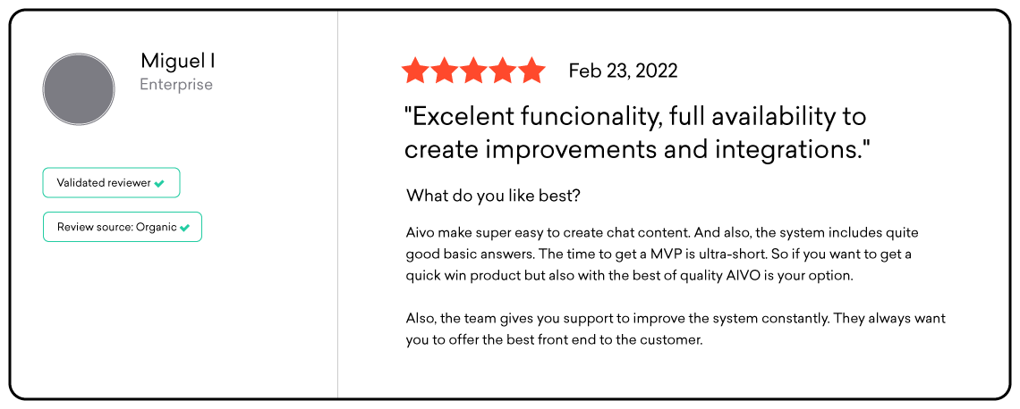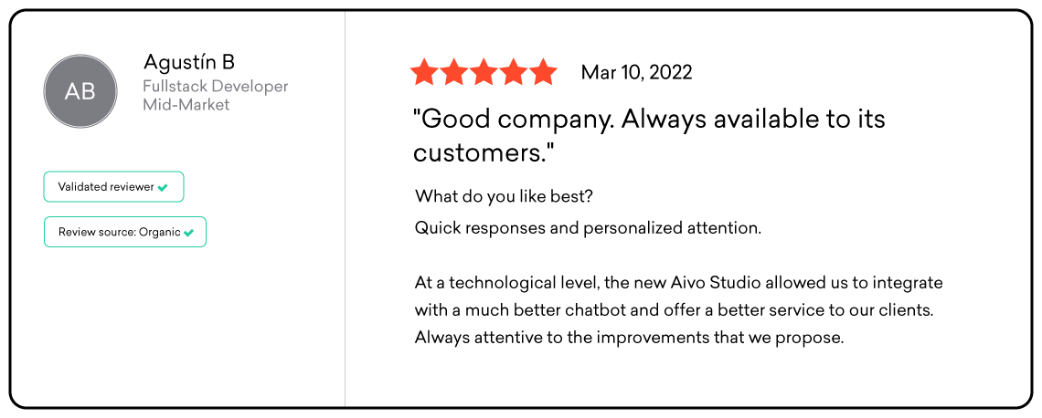 Si quieres saber más sobre cómo nuestras soluciones ayudan a diferentes empresas a ofrecer una experiencia optimizada, puedes leer más reviews en nuestro perfil G2.