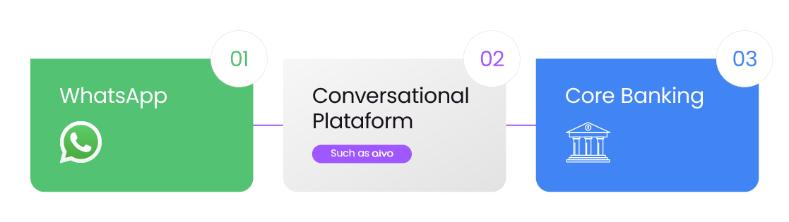 Una plataforma conversacional no sirve de nada sin las integraciones adecuadas. A través de WhatsApp Banking, las instituciones financieras pueden responder preguntas sobre transacciones sobre la cuenta de un cliente, tarjetas de crédito, préstamos, seguros y más.