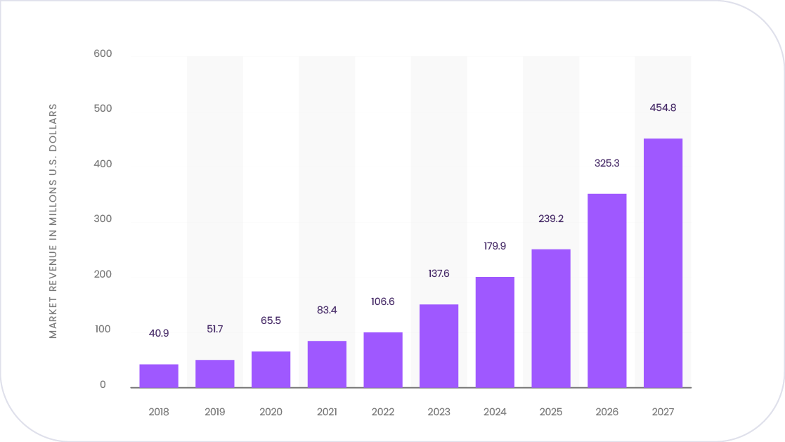 O Statista informou que as receitas globais do setor de chatbot aumentarão para aproximadamente US$ 83 milhões em 2021