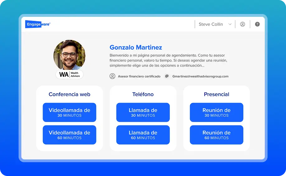 Asigna citas basadas en el territorio, la experiencia, la especialización de producto y la disponibilidad entre miles de asesores. Gestiona escenarios complejos como reuniones de asesoría con múltiples participantes, coordinación de hogares de clientes e involucramiento de especialistas requerido por cumplimiento normativo.