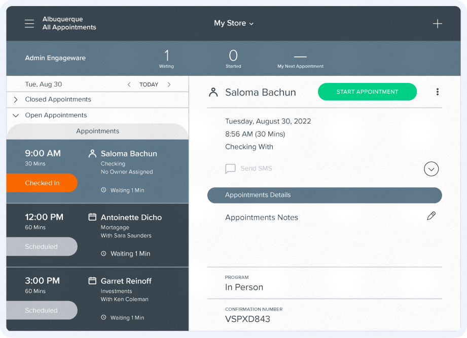 Engageware replaces chaotic walk-ins with a real-time branch queue management system that: